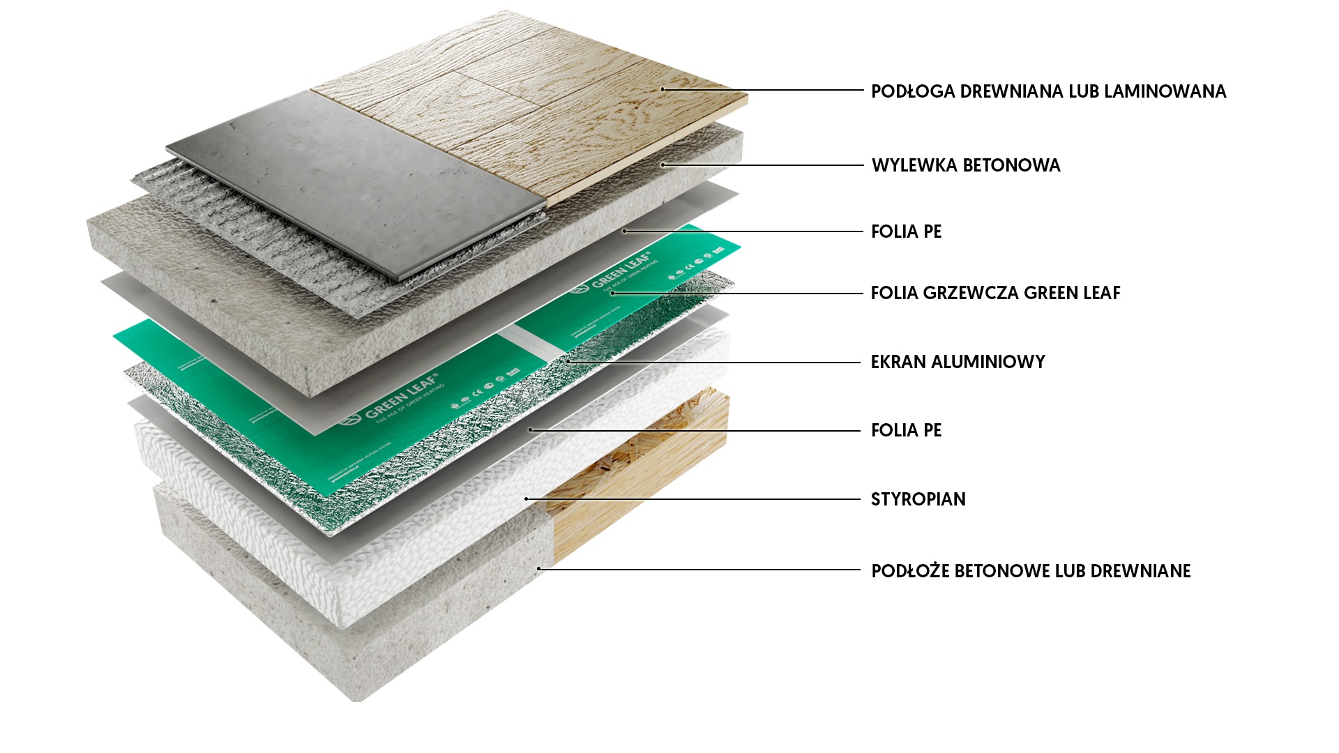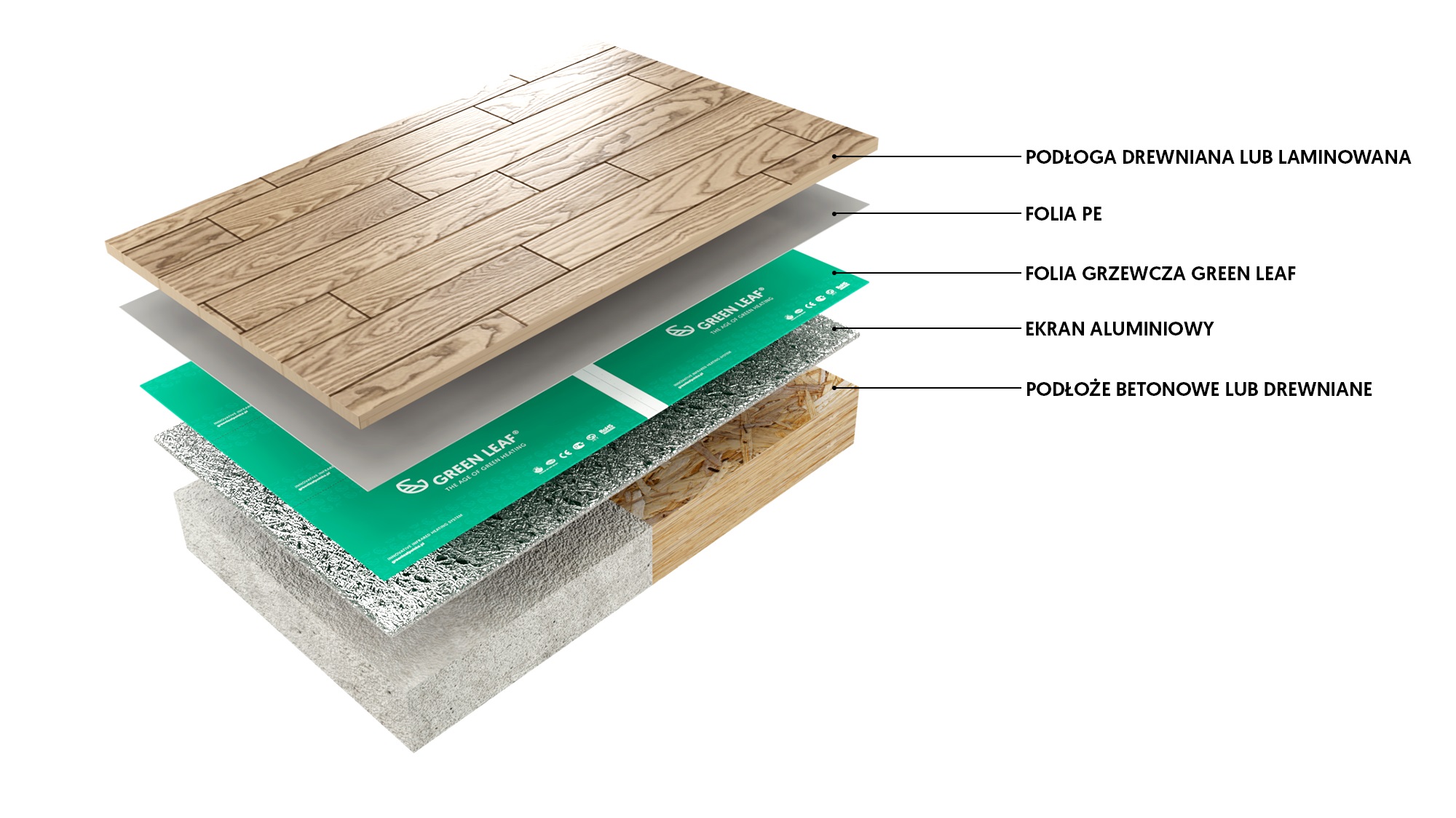 GREEN LEAF® to marka powiązana z brytyjską firmą Warmup, światowym liderem innowacji branży elektrycznego ogrzewania, obecną na rynku od 1994 roku, w ponad 70 krajach na świecie. Folia grzejna GREEN LEAF® zapewniają prawie 100% sprawność emitując promieniowanie cieplne, wszystkie elementy wyposażenia znajdujące się w pomieszczeniu takie jak przegrody budowlane, ludzi, meble. Ogrzane w ten sposób przedmioty promieniują podnosząc temperaturę w pomieszczeniach.