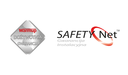 - Gwarancja instalacyjna Safety Net - jeżeli z winy instalatora mata zostanie uszkodzona podczas jej montażu a uszkodzenie zostanie zgłoszone przed wykończeniem podłogi, Warmup bezpłatnie wymieni ją na nową (maksymalnie 1 sztuka/inwestycję).