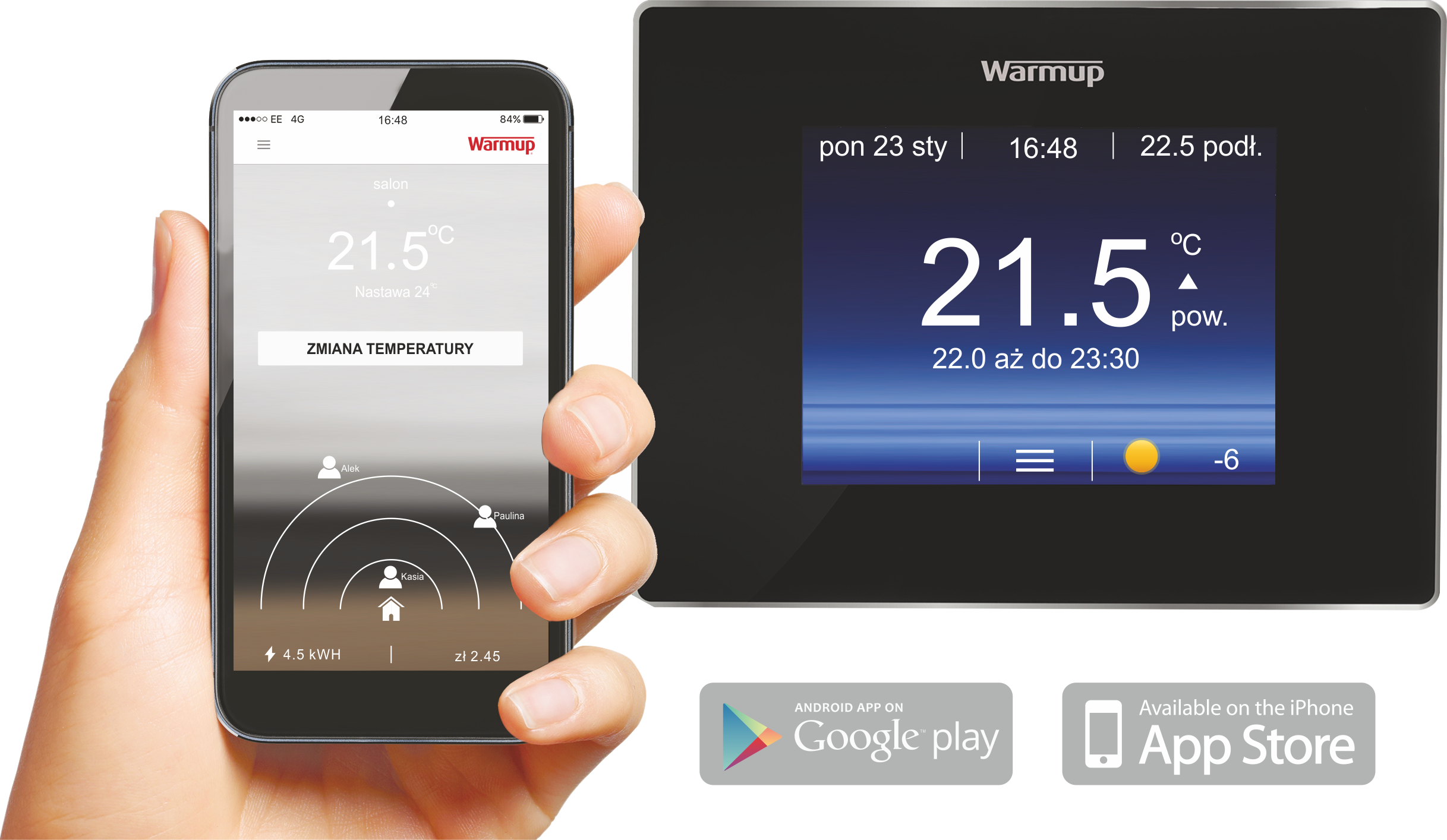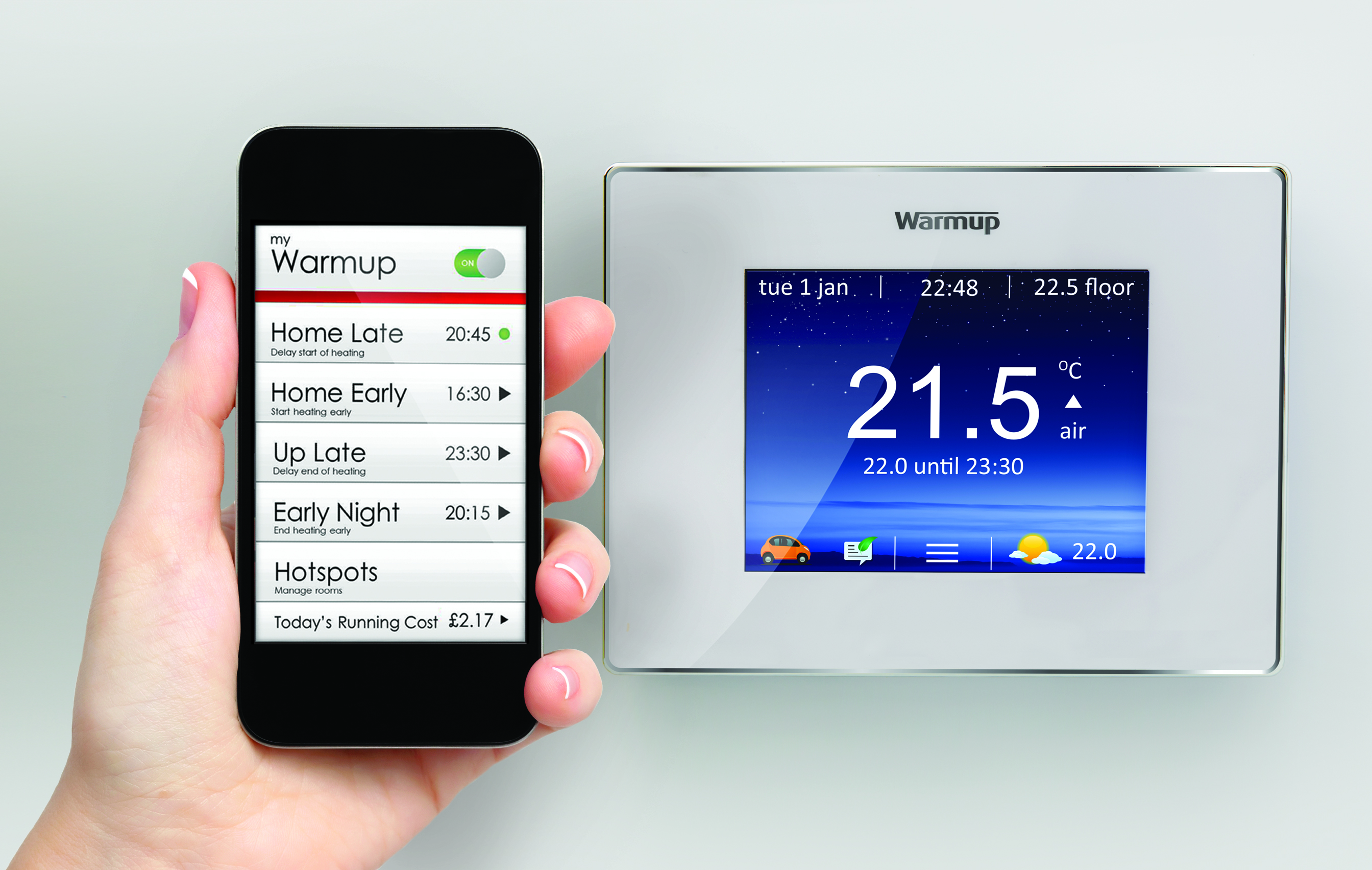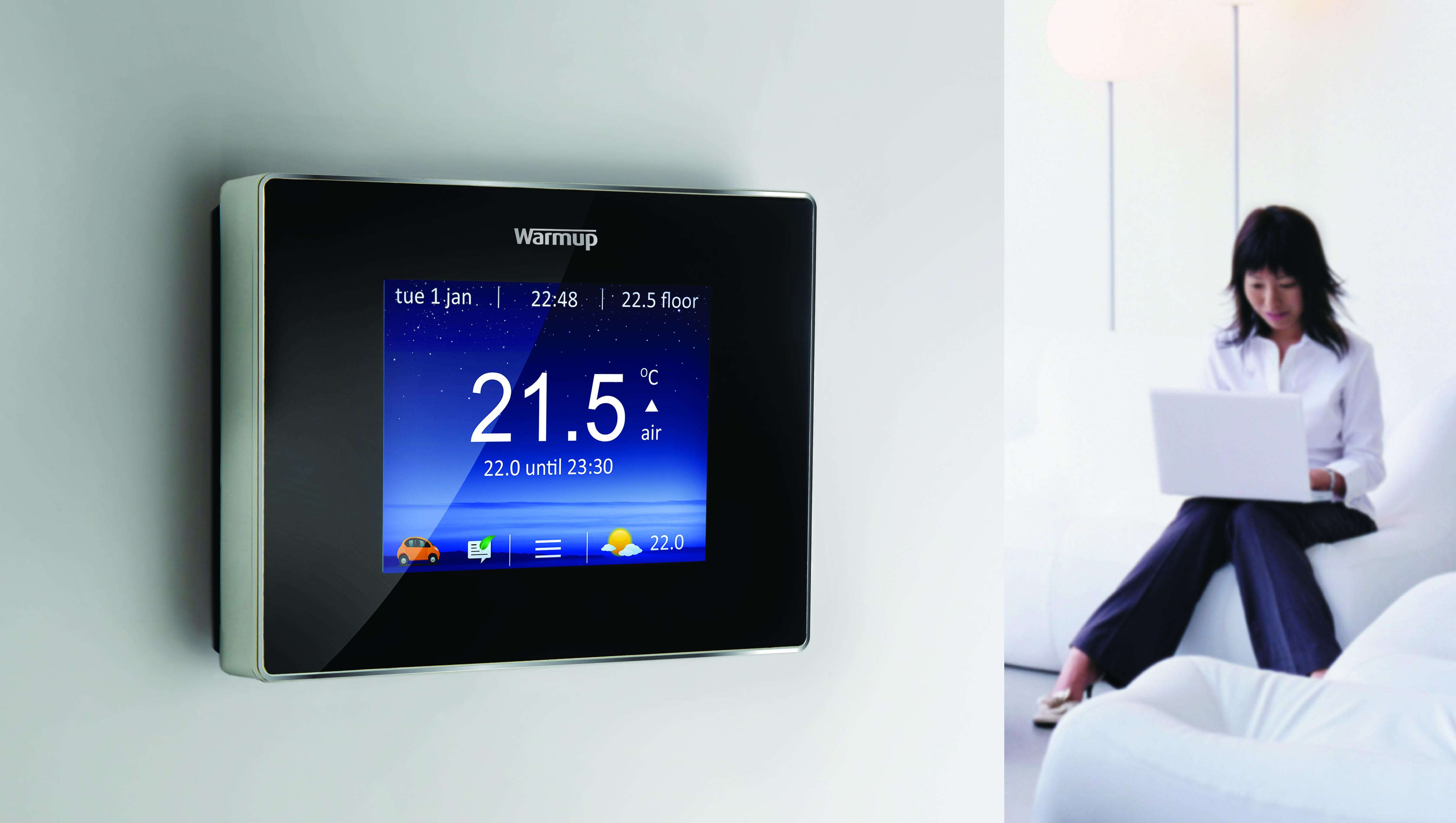 Specjalnie dedykowana stronaMyWarmup™ umożliwia sterowanie ogrzewaniem z komputera w domu, czy w ruchu, z tabletem lub smartfona.